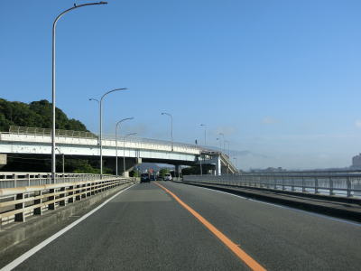 | 差木野町交差点を過ぎると大きく左にカーブし、JR日豊本線とともに北川沿いを走っているとE10東九州道のすさ大橋をくぐり、北側の右岸の盛土の上を快走する。二桁国道とは言え交通量は少なく信号機付きの交差点もないためハイペースで走る事ができる。 | ||