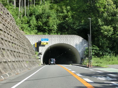 | 長井高架橋を通過して左カーブを曲がるとE10/R10東九州道の北川ICを通過する。インターチェンジには道の駅「北川はゆま」が隣接しており、無料で通行できる区間内のため料金を気にせずにパーキングエリアとしても利用できる。なお、道の駅の出入口は国道と接している部分にはなく、僅かとは言えインターチェンジに入らなければならない(ウォっちずでは交差点〜道の駅の出入口は国道として表記している)。 北川ICを通過して緩やかな勾配を上るとはゆまトンネルをくぐる。トンネルを出ると緩やかな勾配を下りながら左カーブを曲がり、平坦になると右カーブを曲がって日之谷橋を渡る。その後は北川の右岸の堤防の上を快走する。 |