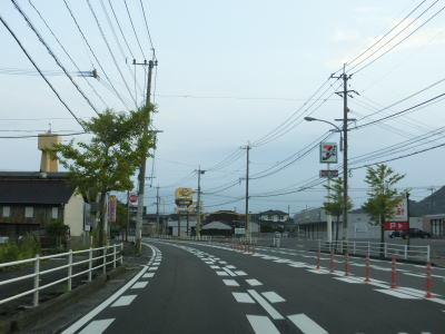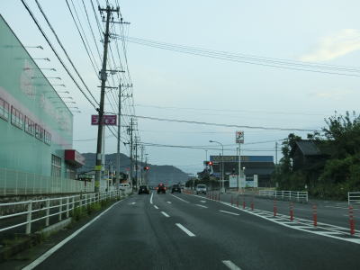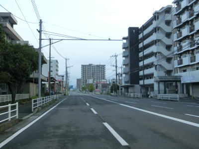 | 安部山入口交差点からは片側3車線道路になるが、右カーブの先の福岡r264湯川交差点で右端の車線がr264への右折車線になってしまう。中央分離帯もなくなって4車線道路になった直後の湯川1交差点でr264が分岐する。釣具店の駐車場の出入口にしか見えないが、建屋と国道の間の1.5車線幅道路がr264である。JR日豊本線と日田彦山線の踏切の間に1.0車線幅区間もあり、大型貨物車両は通行禁止である。 | ||