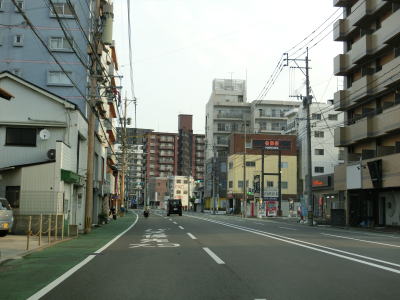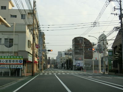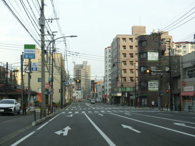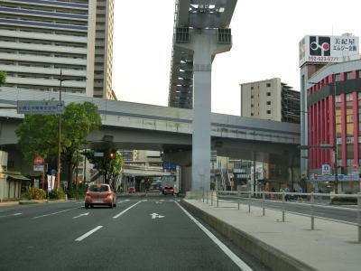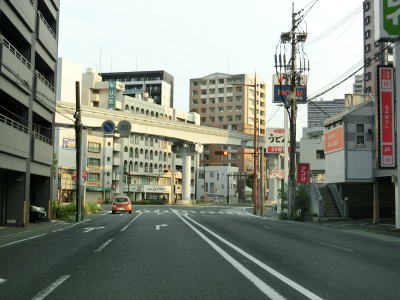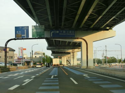 | 564.北九州都市高速を挟んだ片側2車線道路 | 565.交通量は多い | 566.横代交差点を右折 |