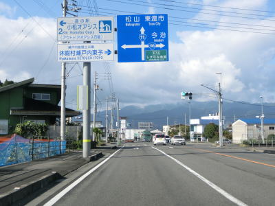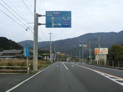 | 235.E11松山道のいよ小松IC | 236.愛媛r147大頭交差点 | 237.中山川の左岸を快走 |