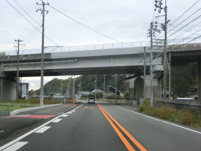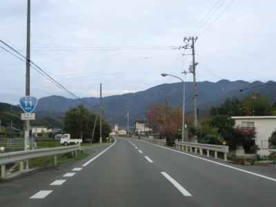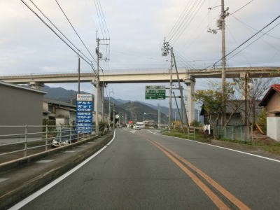 | 則之内交差点付近からは谷筋を出るため視界が開けると同時に周辺の家屋が増える。勾配も緩やかになっており走りやすくなる。E11松山道の永野高架橋の下をくぐってすぐに愛媛r327交差点を通過する。西条市内でも交差していたr327だが、前述のとおり分断区間があるため通り抜ける事はできない。 | ||