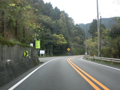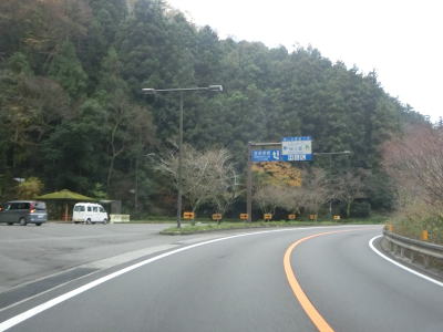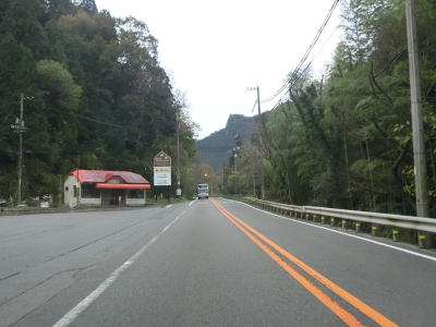 | 愛媛r302交差点から少し走るとレストパーク桜三里を通過する。レストパークとなっているが、公衆トイレのある駐車場であり物産店や飲食店はない。レストパークを過ぎると登坂車線が現れるが、その手前に土谷橋バス停があるため誤ってそちらに入ってしまわないように注意が必要である。登坂車線は500m弱で終わるが、以降も上り勾配が続いている。 | ||