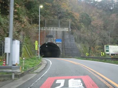 | 河之内隧道をくぐるとようやく峠を越えて下り勾配となる。河之内隧道は古いため断面積が若干小さく、高さが3.8mを超える車両は内壁に接触しないように注意しなければならない。西向き車線の登坂車線が終わる辺りでR494則之内交差点を通過する。案内標識には表記されていないが、この交差点から終点までR494が重複している。 | ||