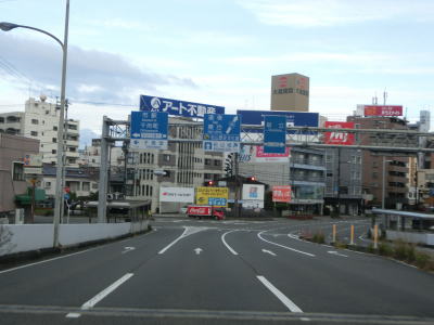 | 276.R33・R379・R440・R494小坂ランプ | 277.小坂交差点の上を通過 | 278.福音寺高架橋以北は片側3車線道路 |