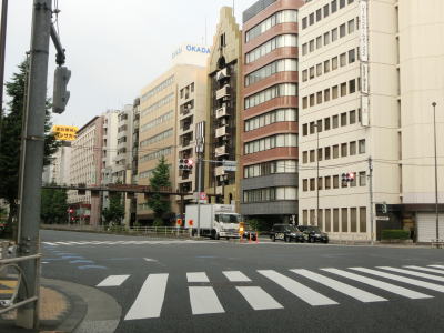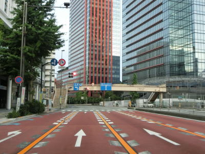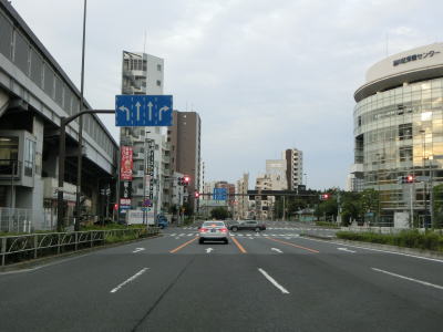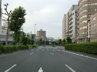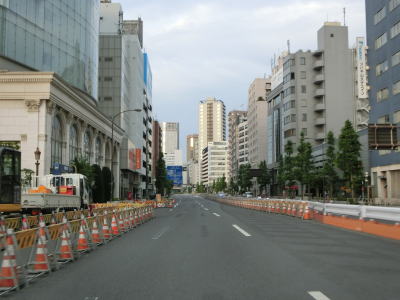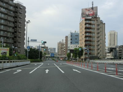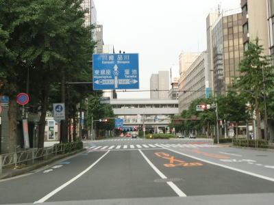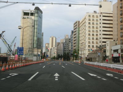 | JR東海道本線、山手線、京浜東北線に沿った片側3車線道路を走っていると東京r415泉岳寺交差点を通過する。左端車線が左折専用車線になり、交差点の先では本来の左端車線が工事のため仮設歩道になっているため車両での通行ができなくなっていた。 | ||