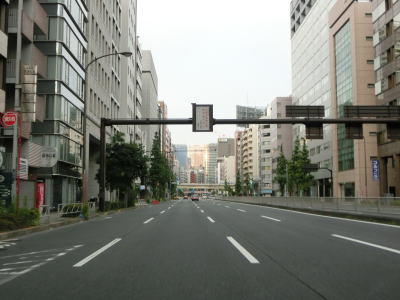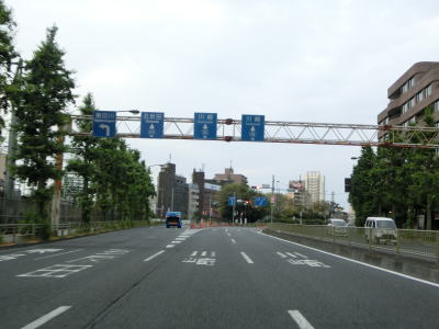 | 東新橋1(日比谷神社前)交差点からは片側3車線道路を走り、浜松町1交差点を左にカーブしながら通過すると片側4車線道路になる。その後、大門交差点を通過するが、交差している大門通の地下には都営大江戸線が通っており、交差点下には大門駅がある。 | ||