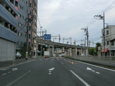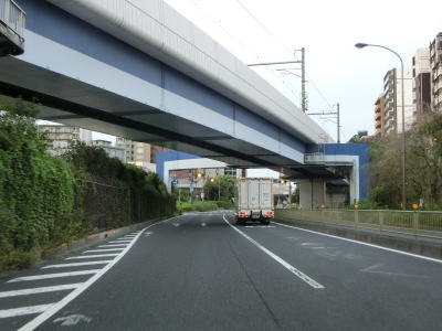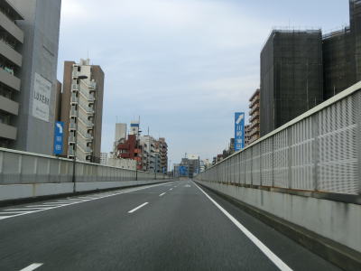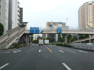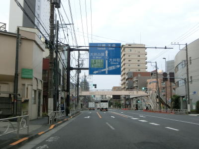 | 片側2車線の大森陸橋を走っていると東京r318大森東交差点の上を通過する。その少し南のR131大森警察署前ランプで左側車線がR131になってしまうめ右側車線を走っている必要がある。 | ||