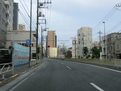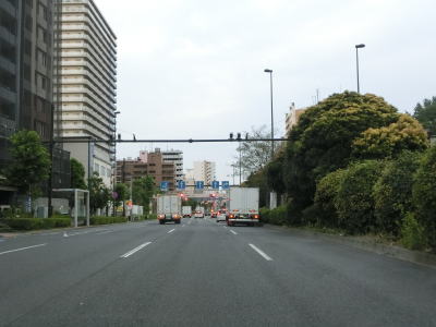 | 京浜急行に沿った片側2車線道路を走っていると東京r421交差点と東京r420南品川3交差点を相次いで通過する。両交差点間の距離は約300mあるが、r421交差点を過ぎてすぐに南品川3交差点の左折車線が現れる。R15は右側の2車線を道なりに右へカーブするようにして通過する。 | ||