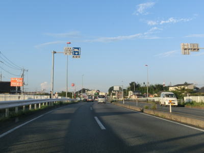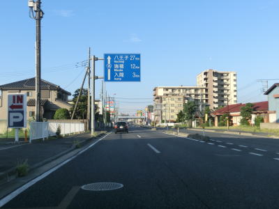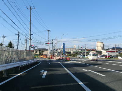 | 狭山市に入ってからも交通量の多い片側2車線道路が続いている。西武新宿線の新狭山駅と狭山市駅のほぼ中間くらいで埼玉r126・r397上奥富中交差点を通過するが、右折のr397は狭山環状道路(狭山大橋)という有料道路である。上流下流どちら側には数キロ離れた位置に無料で渡れる橋があるものの普通車で150円という低料金のためか、意外に交通量が多い模様。 新狭山市駅の西に広がる市街地の西を迂回するようなルートで走る。稲荷山公園の北を通り過ぎて緩やかな左カーブを走っていると入間市に入る。入間市に入ると中央分離帯が新しく路面には消されたライン痕が残っておりごく最近改良が行われた事を想像させる。そして黒須交差点を過ぎた所で右側車線が合流してきて対面2車線になる。 |