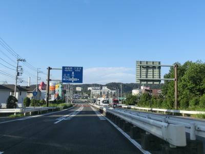 | 稲荷坂を下って市街地のある平坦地に入ると拡幅工事現場を通過し、川口川と浅川を相次いで渡る。浅川橋を渡った先で南向きは3車線にまで増える。ただし、R20八幡町交差点を左折しなければならないため、R16をトレースできるのは左端の車線のみである。 | ||
