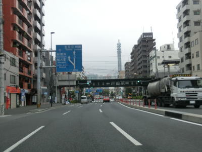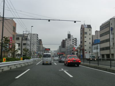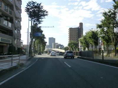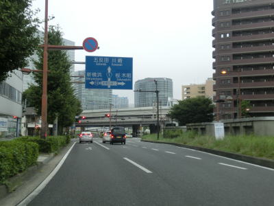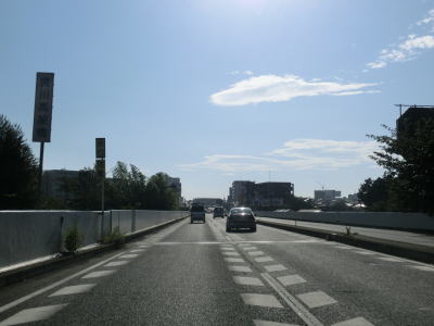 | 尾張屋橋を下った所でR1・神奈川r81浜松町交差点に至る。R1との交差点だがここで終了ではなく左折してR1と重複して川崎・高島方面に進む。案内標識にR1とR16が重複している事が確認できるので間違う心配はないだろう。 浜松町交差点からはさらに交通量が増える。道路状況としては片側3車線分の用地はあるが左端はガードレールが置かれており車道として利用できない。そんな片側2車線状態を走っていると京急本線のガードの手前で車線が増えて片側3車線になる。 |
