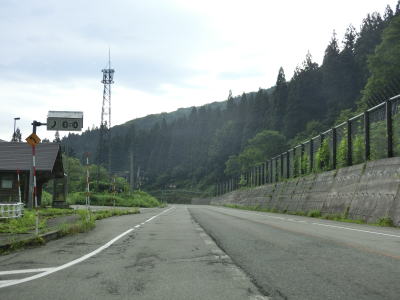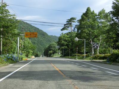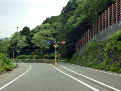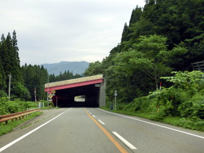 | 浅貝交差点からはR353が重複しているが、特に道路状況に変化は見られない。ホテル等が建ち並ぶ苗場エリアを出ると同時に上り勾配となって雨量通行規制区間に入る。通行止になる規制値は連続雨量180mm超と山岳酷道に比べると高い数字に設定されている。勾配を上っていると火打1号雪覆道に入るが、出るのは5号洞門である。1号〜5号の雪覆道もしくは洞門が繋がってひとつになっている。5号洞門の直後の6号雪覆道は単独のまま残っている。 | ||