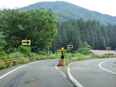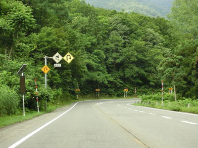 | 341.芝原トンネルの先にもヘアピンカーブがある | 342.「この先2km 急カーブあり エンジンブレーキつかえ」 | 343.新潟r351交差点 |
