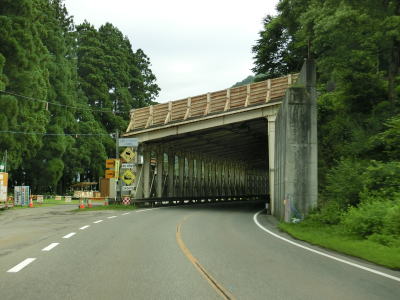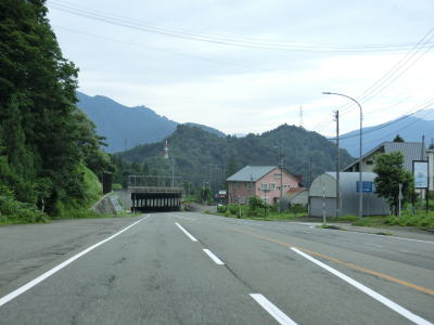 | 緩やかな勾配を下っていると貝掛スノーシェッドと三俣スノーシェッドを通過する。貝掛スノーシェッドの前後には町道が接続しており、貝掛温泉への出入口となっている。三俣スノーシェッドからはカーブのほとんどない緩やかな勾配を下って行く。 | ||