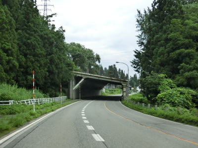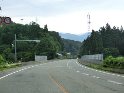 | 木沢トンネルを出た直後は右の直角カーブのため分離帯が設置されている。程なくして北向き車線に登坂車線が設置されているが、その延長は500m程度と長くない。登坂車線が終わった先で芝原トンネルをくぐる。 | ||