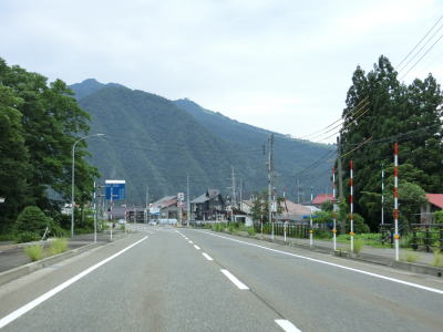| 交通量が多くなった2車線道路を走っていると新潟r268湯沢駅前交差点を通過する。在来線の上越線の湯沢駅の西に上越新幹線の越後湯沢駅が隣接している。E17関越道と並走しながら北西の方角に進んでいると緩やかな勾配を下り、新潟r351交差点を通過して湯之沢橋を渡る。 | ||