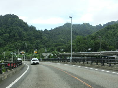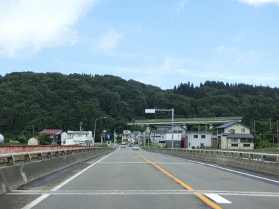 | 和南津橋を渡り終えると新潟r333野田交差点を通過して左カーブを曲がる。交差点の前方に見えている橋梁はE17関越道の野田高架橋である。曲線半径の大きな右ヘアピンカーブを曲がってE17関越道の谷地橋をくぐり、直後に道の駅「越後川口」を通過する。 | ||
