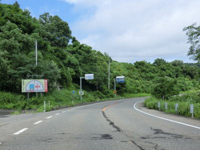 | 新潟r421交差点以降も6%勾配及び登坂車線が続いている。登坂車線の終点付近で新潟r339交差点を通過して対面2車線道路に戻る。河岸段丘に沿って走っていると右にカーブしながら新潟r421交差点と新潟r58天納2交差点を相次いで通過する。r421交差点にr421とr582交差点のソトバが設置されているが、2つの交差点は60mほど離れている。 | ||