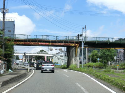 | 天神橋を渡った北詰で新潟r58交差点を通過するが、このr58も約160m先の交差点まではR17の旧道と思われる。2車線道路をさらに北上すると新潟r71浦佐交差点を右にカーブしながら通過する。緩やかな勾配を上っていると上越新幹線の高架橋をくぐるが、その下の浦佐跨線橋でJR上越線の上を通過してやや急な左カーブを曲がる。 | ||