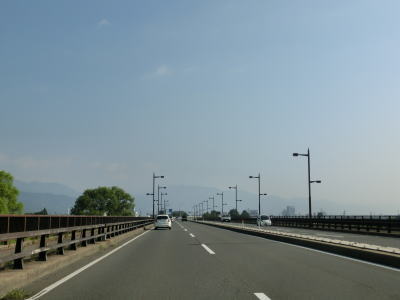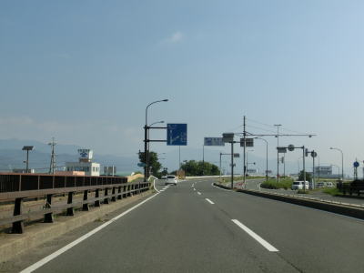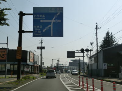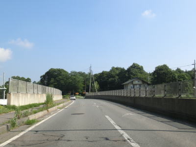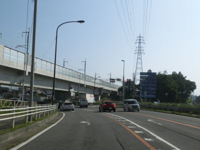| 長野市に戻ってすぐに浅川新橋と鳥居大橋を相次いで渡る。鳥居大橋を渡り終えると緩やかな勾配を下りながらやや急な左カーブを曲がる。北陸新幹線の高架の手前にR117・長野r399浅野交差点があり、道なりに直進して上越・信濃町方面に進むが、この交差点でR117が飯山方面に分岐する。 | ||