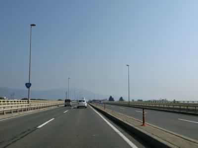 | 166.長野大橋 | 167.右側車線のみが跨道橋へ進める | 168.跨道橋は片側1車線 |