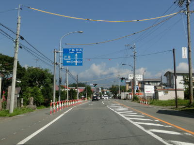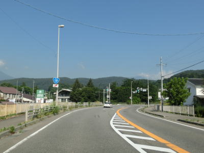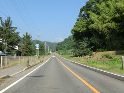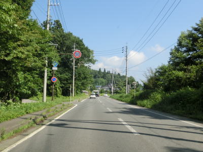 | 滝沢川の流域を走っていると町境を通過して信濃町に入る。滝沢川から離れて開けた山裾を走り、いくつかの集落を通り抜ける。山間部にありながら二桁国道とあって良く整備されており、緩やかなアップダウンと緩やかなカーブを繰り返す快走路を淡々と走る。 | ||