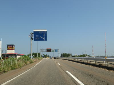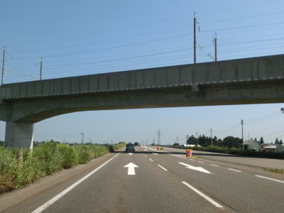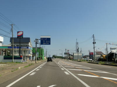 | 道の駅からも見通しが良く走りやすい2車線道路をハイペースで走る。簡易的な佐川PAの前を通過してから程なくして新潟r63乙吉交差点を通過する。その後も盛土の上野2車線道路を北上して新井大橋で矢代川を渡る。 | ||