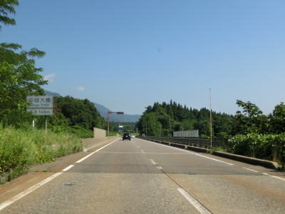 | 工事のため片側交互通行規制が敷かれていた信越大橋を渡ると新潟県妙高市に入る。関川に対してかなり高い位置に架けられており、下流側にある一之橋が旧道である。信越大橋を渡り終えてからは上り勾配を走り、新潟r39杉野沢入口交差点を通過する。その後も上り勾配が続いているが、道幅に余裕があるため非常に走りやすい。 | ||