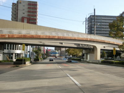 | 7.市道(山王通)との古渡町交差点と名古屋高速都心環状線 | 8.市道(若宮大通)との若宮南/北交差点と名古屋高速2号東山線 | 9.「岐阜36km 一宮21km」「多治見33km 春日井13km」 |
