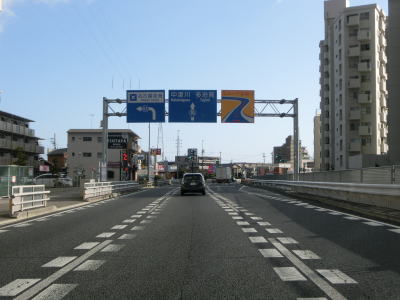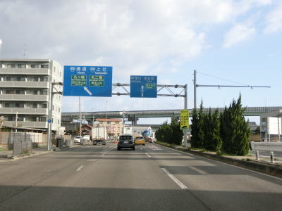| 春日井インター東交差点を通過してすぐに左端車線が減少して片側2車線道路になる。沿線の建物は少なくなっているが、交通量は多いままである。市道とのランプを2ヶ所通過した後に緩やかに下って愛知r199坂下町6南交差点を通過する。愛知r196紙屋公園前交差点を過ぎて緩やかな右カーブを曲がると愛知r178中新田ランプを通過する。 | ||