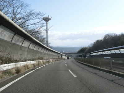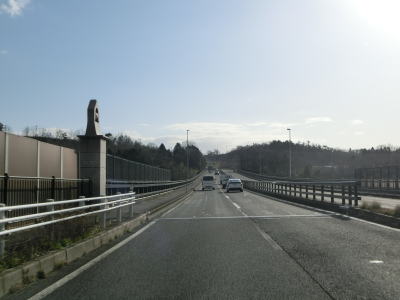 | 土岐市に入ってから緩やかな勾配を上っていると工事中の側道の傍を通る。これは建設中のイオンモール土岐(仮称)への流入路のひとつだろう。なお、イオンモール土岐(仮称)は当初2019年に開業予定だったが、工事が遅れているようで2022年以降に延期されている。 イオンモール予定地を過ぎてすぐに岐阜r382・r421神明町ランプの側道が分岐する。遮音壁に挟まれた片側2車線道路を下っているとR475/C3東海環状道の御幸大橋の下をくぐる。 |