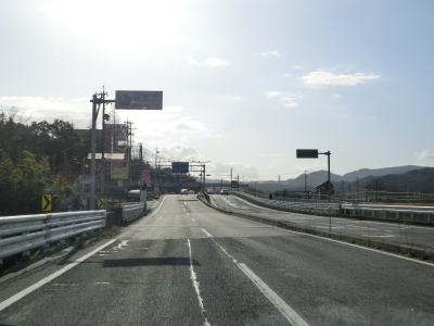 | 沖田交差点の直後に上下線が別々の落合大橋を渡って左の急カーブを曲がる。以降はやや急な勾配を上り、大きく右、左とカーブした後に左側車線が減少する。以降は下り勾配となる。 | ||