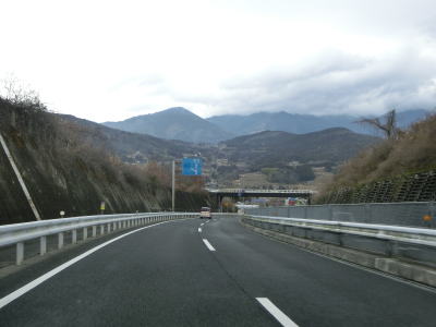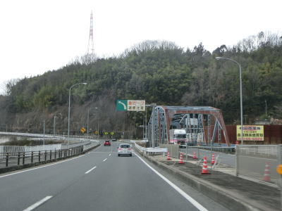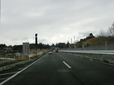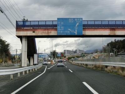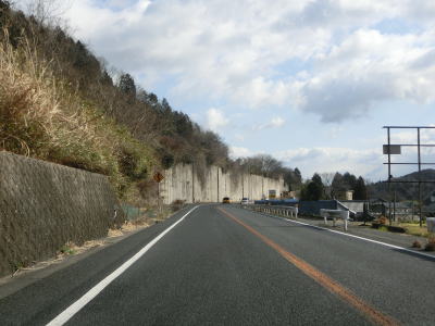 | 対象区間の延長が5kmの異常気象時通行規制区間に入る。ここでは連続雨量150mmを超えると通行止になる。木曽川の左岸を走っているが高低差があるせいもあって川面はあまり見えない。反対側の南向き車線の登坂車線が終わると前野橋を渡る。沿線の家屋は多くないが、山の斜面には多くの家屋が建っており人里離れた場所ではない。 | ||