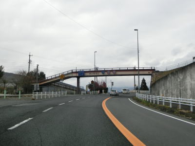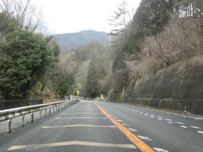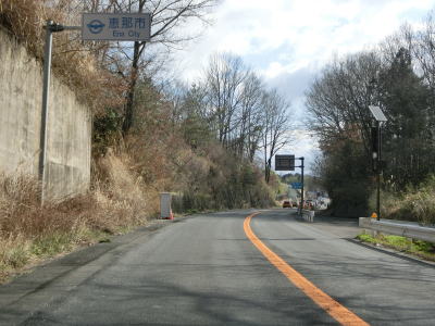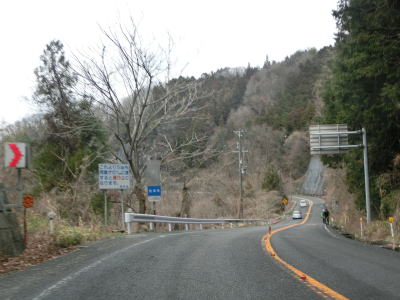 | 緩やかな右カーブを曲がっていると市境を越えて恵那市に入り、300m程でR418向流交差点を通過する。ここで交差している道路はR418とを繋ぐ連絡道路であり、案内標識にR418のおにぎりが表記されているがウォッちずでは国道を示す色に塗られていない。向流交差点からも下り勾配が続いており、藤川を渡ると上り勾配となりR418の上を通過する。 | ||