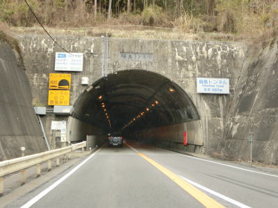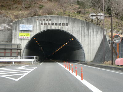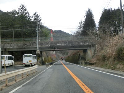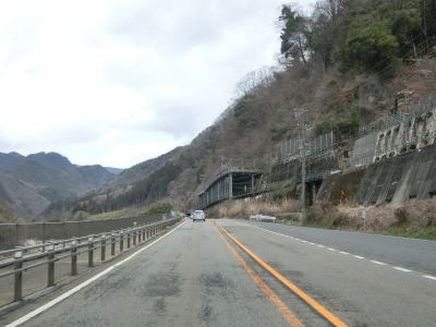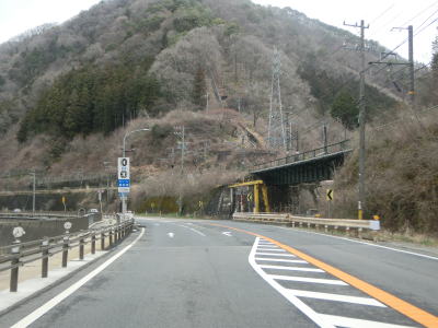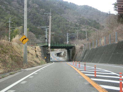 | 上松第3トンネルからのやや急な勾配を下っているとJR中央本線のガードをくぐり、旧道との交差点を通り過ぎてあげまつ大橋で木曽川を渡る。上り勾配の右カーブを曲がっていると桟トンネルをくぐり、トンネルからはやや急な勾配を下る。長野r508とを繋ぐ町道(?)との木曽の桟交差点を通過してかけはし大橋を渡る。 | ||