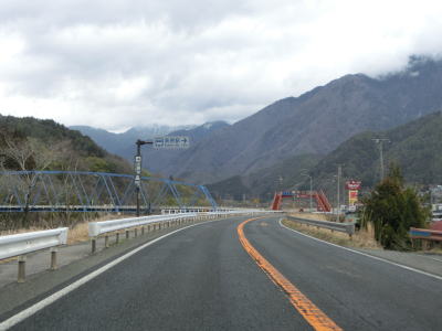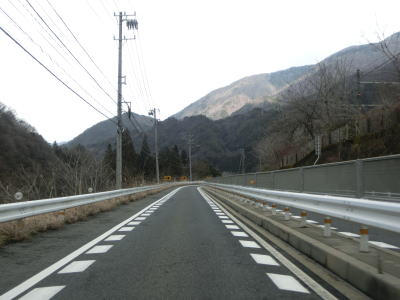 | JR中央本線に沿って右カーブを曲がった先で伊奈川橋を渡る。上流側に中央本線の橋梁が見えるが、さらに上流にはr265の橋が架かっている。中央本線から離れると木曽川沿いとなる。 | ||