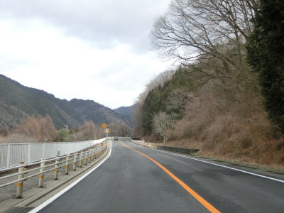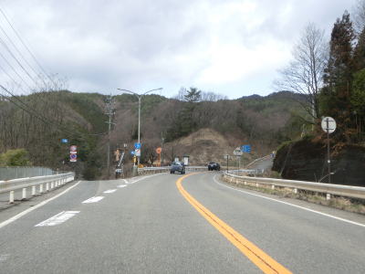 | 中央分離帯がなくなって対面2車線道路に戻ってからも走りやすい道路状況が続いている。木曽川の対岸には長野r508が並走しているが、これは2009年に認定された比較的新しい県道である。上松南木曽線という路線名だが、全線供用には至っていない。小野の滝の近くを通り過ぎた後に滑川橋を渡ってから右の急カーブを曲がる。 | ||