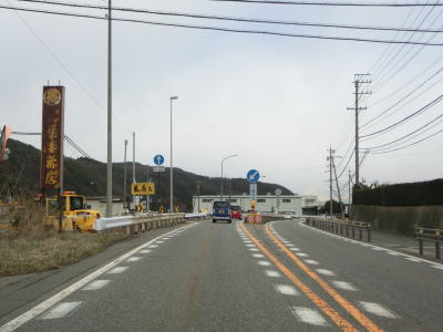 | 195.桜沢バイパスが建設中 | 196.現道も2車線道路 | 197.日出塩駅へはここを右折 |