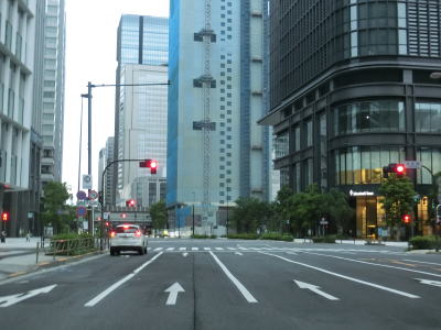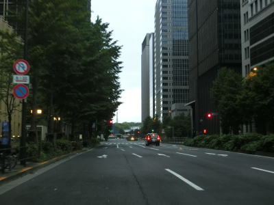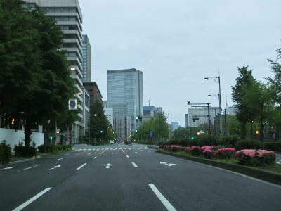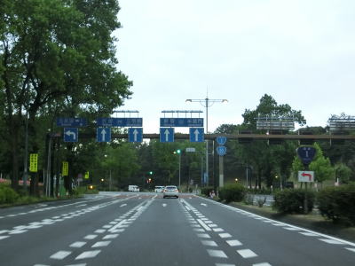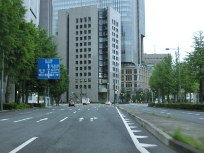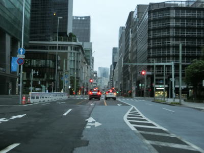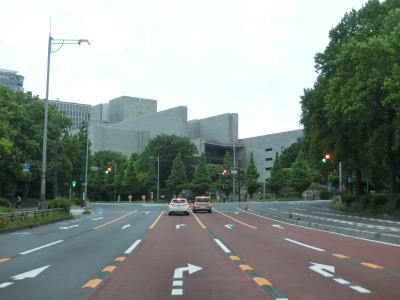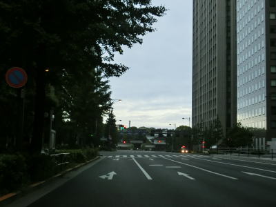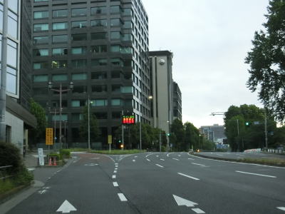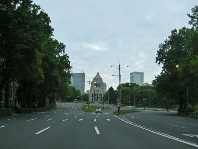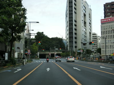 | 桜田門交差点からは緩やかな勾配を下り、正面に国会議事堂を見ながら右方向へカーブして東京r412国会前交差点を通過する。r412への車線は3本あるが、元々の4車線はそのままR20をトレースできる。国会前交差点を過ぎてからも下り勾配とカーブは続いており、左には首都高4号新宿線が見える。厳密に言えば三宅坂JCTの一部でC1都心環状線から4号新宿線へのランプとC1の外回り車線である(C1の内回り車線は千代田トンネル)。 下り勾配が終わって左カーブを曲がった先でR246三宅坂交差点を右方向へ進む。4車線のうち、左側の2車線がR246厚木・渋谷方面、右側の2車線がR20新宿・半蔵門方面である。R20のトレースであれば右折車線の左端から曲がる方が便利である。 |