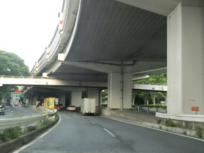 | 35.東京r318(環七通)大原交差点のアンダーパスも2車線 | 36.東京r413松原交差点は大原陸橋でオーバーパス | 37.首都高4号新宿線の永福入口は側道から入る |