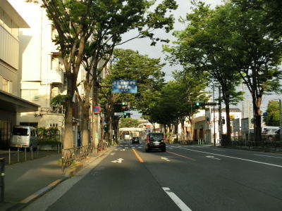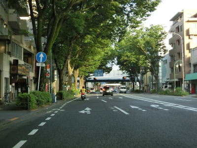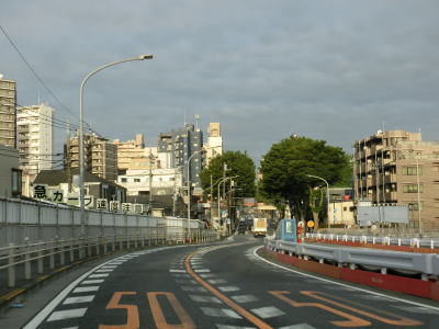 | 上北沢駅入口交差点を過ぎると中央分離帯がなくって対面4車線道路になる。その辺りで世田谷区に入るが約600m西で再び杉並区に入る。東京r311(環八通)との上高井戸1交差点を通過するが、これまで多くの道路との立体交差点はR20が跨道橋もしくはアンダーパスだったが、ここではr311が高井戸陸橋で交差点の上を越えている。高井戸交差点を左折して南下するとE1東名の東京ICが、右折して北上すると首都高4号新宿線の高井戸IC、さらに北上するとE17関越道の練馬ICがある。 高井戸交差点を過ぎて少し走ると区境を通過して再び世田谷区に入る。4車線道路が続いているが、左側車線がやや狭い。特に交差点付近では顕著で、普通乗用車でも意識して左に寄らなければ右側車線にはみ出してしまいそうである。 |