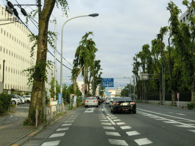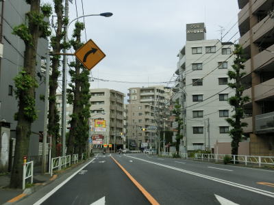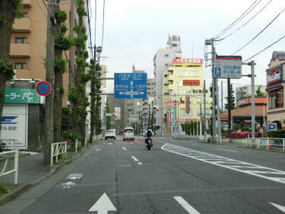 | 大和田橋南詰交差点を過ぎると車線が増えて4車線道路に戻るも約200m先の明神町交差点を右折しなければならないため右側車線に移る必要がある。交差点は五差路であり、右側車線はR20大月方面の右折だけでなく、八王子駅方面の右折も兼ねている。右斜め前方が八王子駅方面で、しっかり右折する方がR20である。 | ||