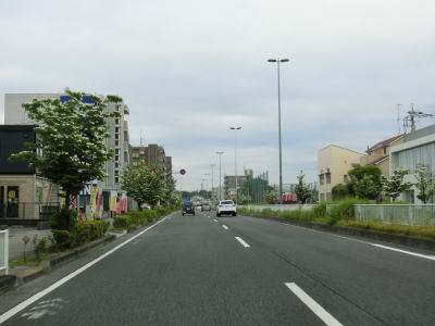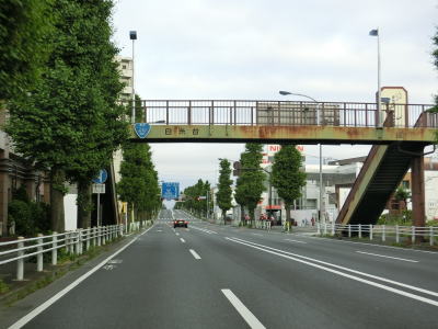 | 味の素スタジアムを通り過ぎた所で府中市に入るが、道路状況と周辺の風景に特に変化は見らない。平坦で直線的な4車線道路を走り、緩やかな勾配を上って車返跨線橋で西武多摩川線の上を通過する。跨線橋が終わると平坦な状態に戻る。 | ||