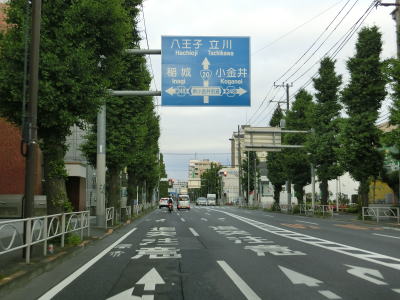 | 旧道である東京r229の支線との東府中三差路交差点を通過して京王電鉄に沿って西進していると東京r15小金井街道入口交差点を通過する。南を並走するr229との八幡宿交差点までr15に指定されているのはr229がR20の旧道だからであろう。 | ||