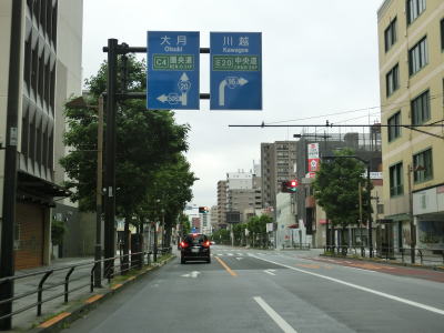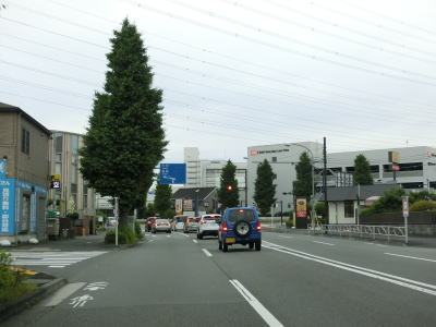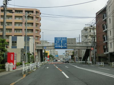 | 高倉町西交差点からも中央分離帯のない4車線道路が続いている。左側車線は時間帯別バス専用車線(日曜休日を除く7:30〜8:30及び17:00〜18:00)だが、路線バスの他に通勤・通学バスや通勤送迎バスも含まれる。 JR八高線を越えている八高線陸橋を通過するが、この跨線橋の前後にも勾配がなく鉄道を跨いでいるという実感は薄い。跨線橋から少し進むと東京r59・r155石川入口交差点を通過する。 |