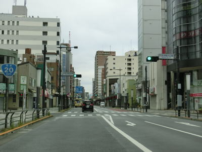 | 91.大和田橋南詰交差点の直後に車線が増える | 92.明神町交差点を右折 | |