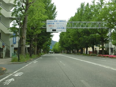 | 追分町交差点の左折車線は1本だけであったが、以降も4車線道路が続いている。JR中央本線の北西を並走しており、ほぼ平坦でカーブもほとんどがなく直線的である。この区間も大型貨物車と特定中型貨物車は右側車線を走るように指定されている。左側車線の幅は決して狭くないが、右折車線のある部分はやや狭い。 | ||