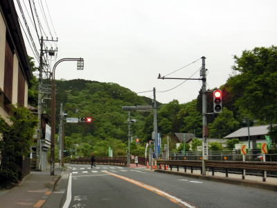 | 案内川の谷筋を走っていると京王電鉄高尾線の橋梁をくぐり、右カーブを曲がって高尾山口駅前交差点を通過する。京王電鉄高尾線の終着駅であり、高尾山観光の拠点のため行楽シーズンの休日は人も車も多い場所である。さらに進むと東京r189高尾山入口交差点を通過するが、高尾登山ケーブルの清滝駅の入口付近から薬王院方面は参道のため一般車両の通行が禁止されている。 | ||