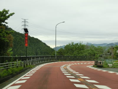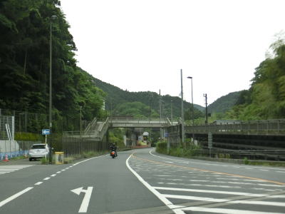 | 案内川を何ヶ所も渡りながらひたすら上って行く。急なカーブはないもの小刻みなカーブが連続しており見通しはあまり良くない。二桁幹線国道で交通量が多いためか、いくつかの商業施設も見られる。 | ||